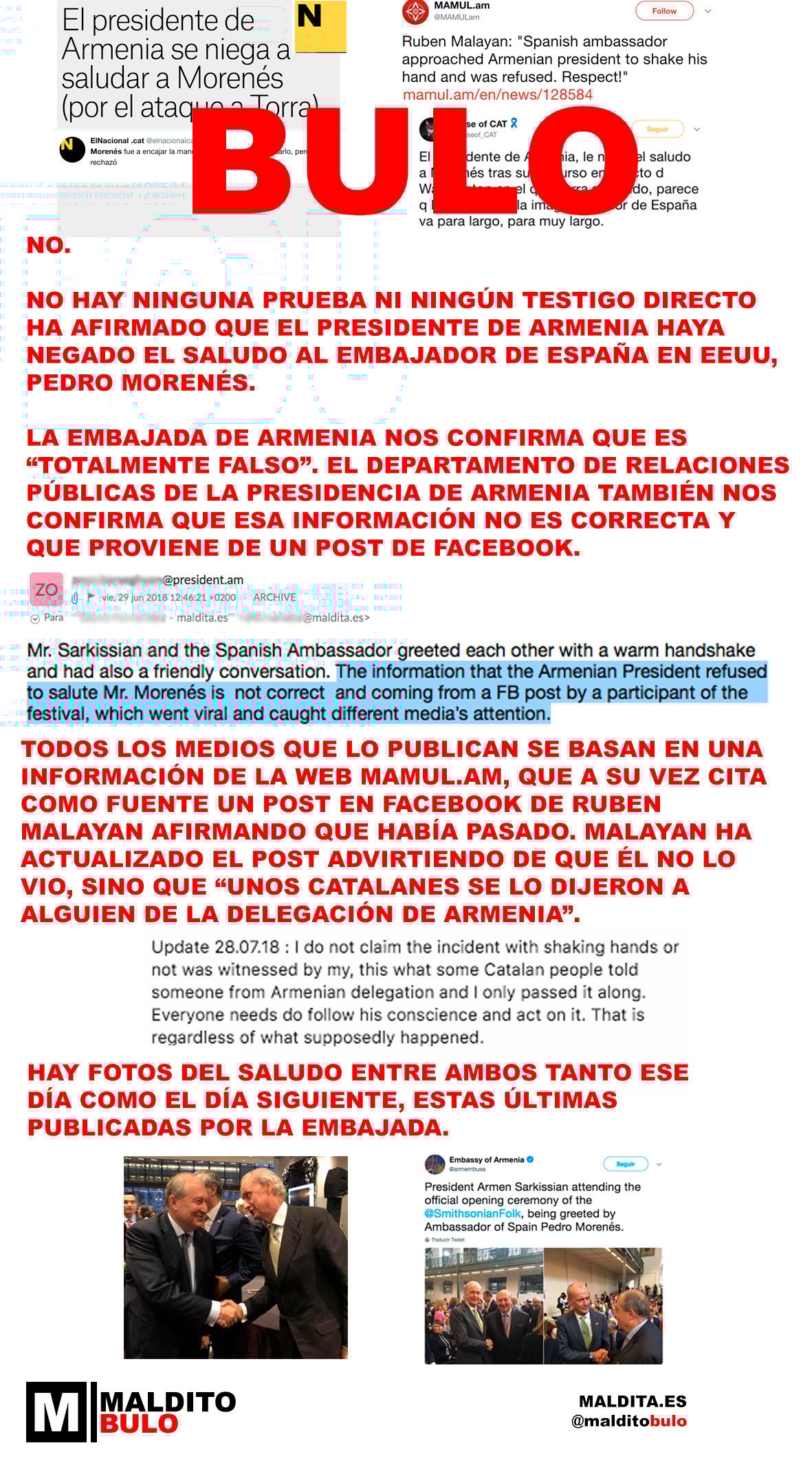 No, no hay ninguna prueba que demuestre que el Presidente de Armenia haya negado el saludo al embajador de España en EEUU, Pedro Morenés