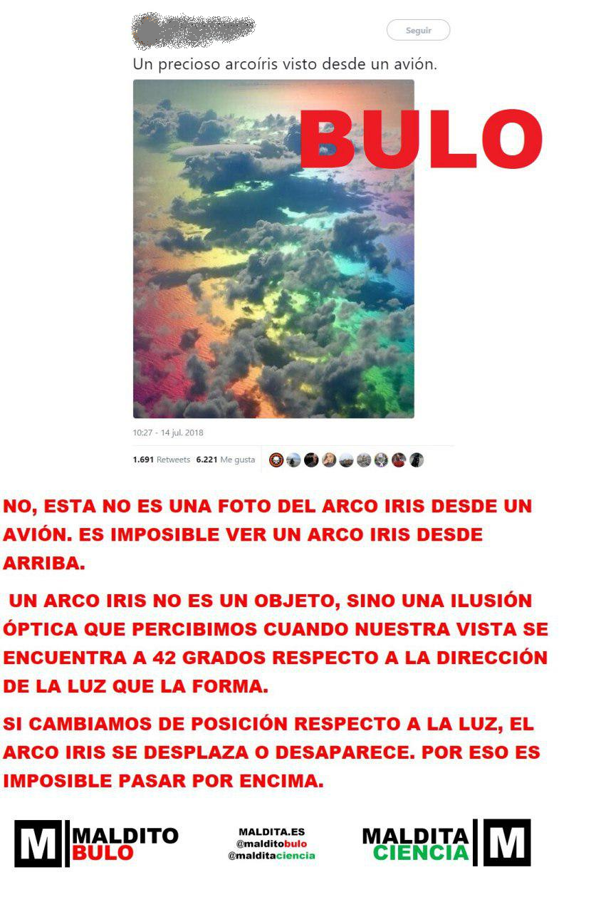 - No, esta no es una foto del arco iris desde un avión. Es imposible ver un arco iris desde arriba.