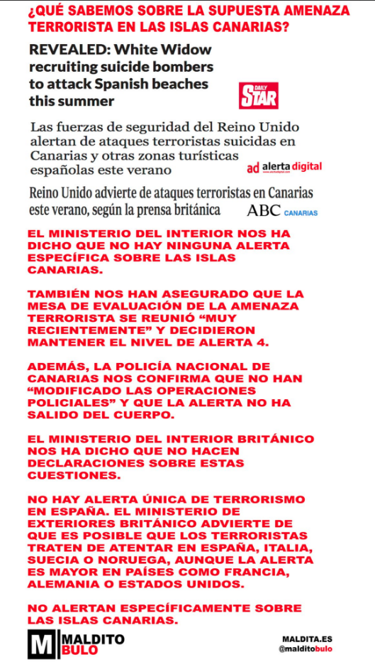 - El Ministerio del Interior nos ha dichoq ue no hay ninguan alerta específica sobre las Islas Canarias.