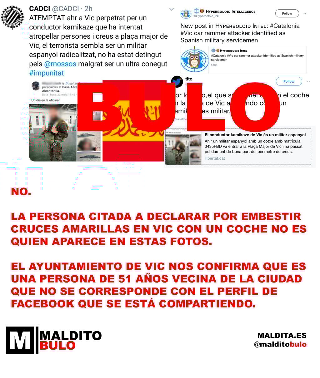 «[T] No, la persona citada a declarar por embestir cruces amarillas en Vic con un coche no es quien aparece en estas fotos»