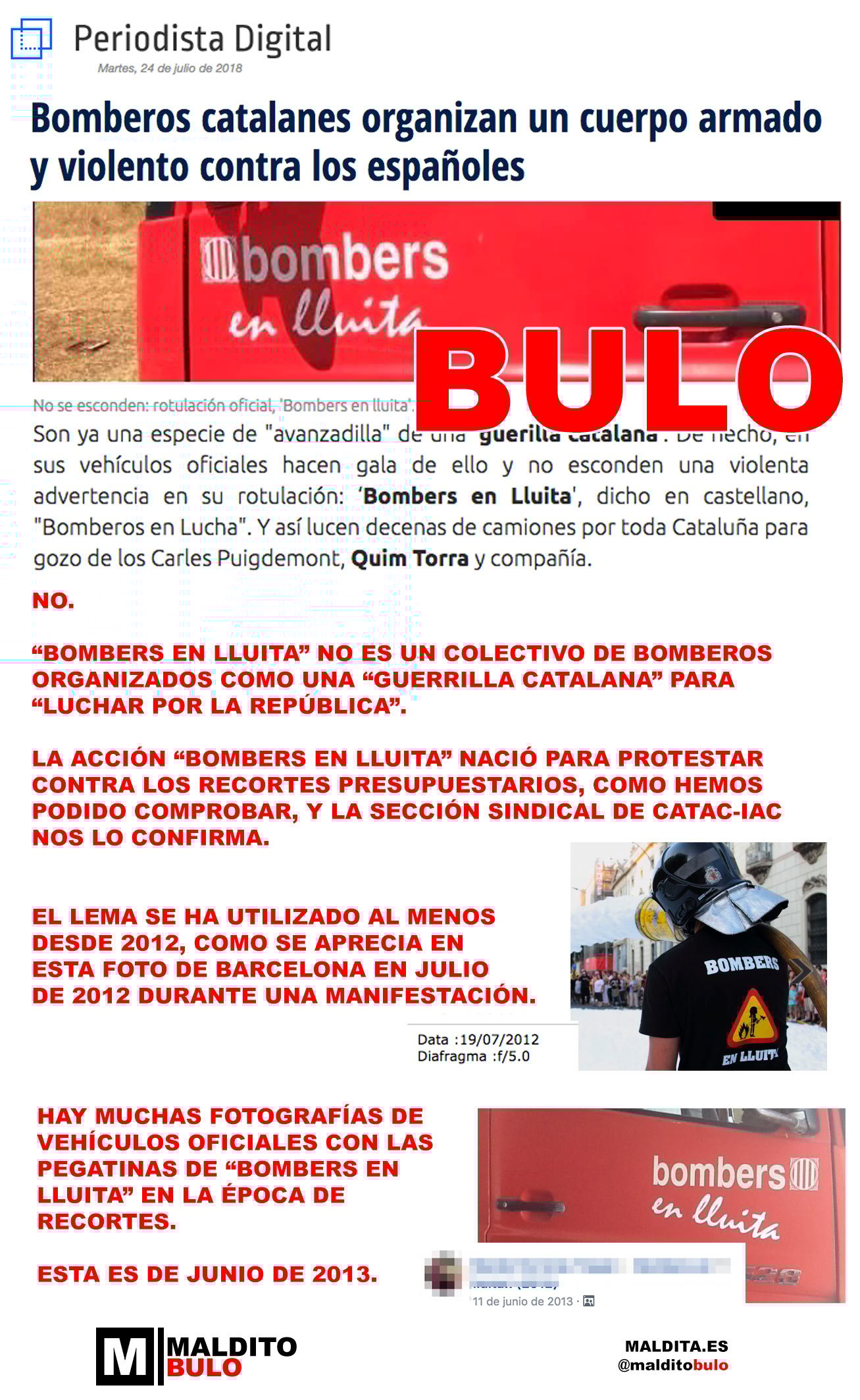 «[T] No, "Bombers en lluita" no es un colectivo de bomberos organizados como una "guerrilla catalana" para "luchar por la República"»