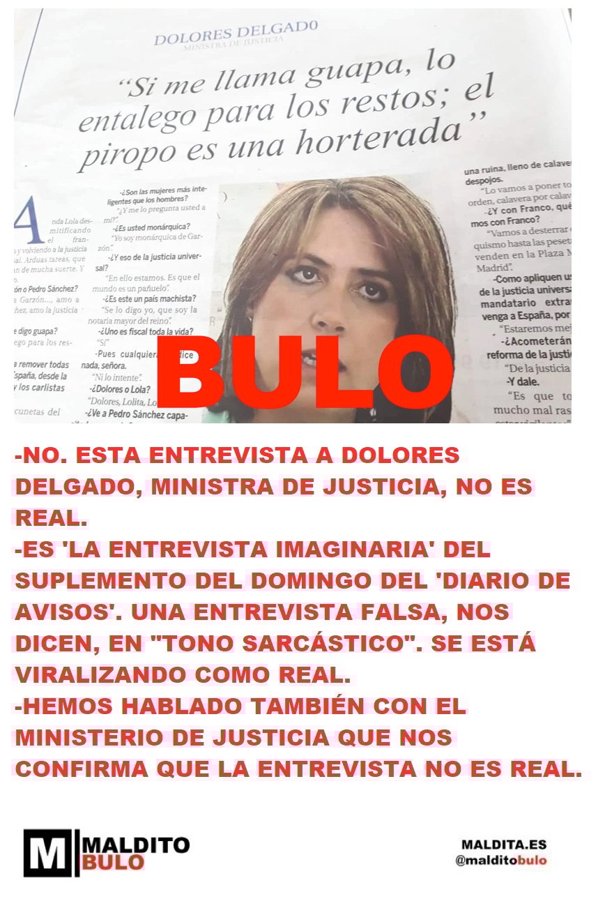 No. La ministra de Justicia, Dolores Delgado, no ha dicho "si me llaman guapa lo entalego para los restos" en una entrevista.
