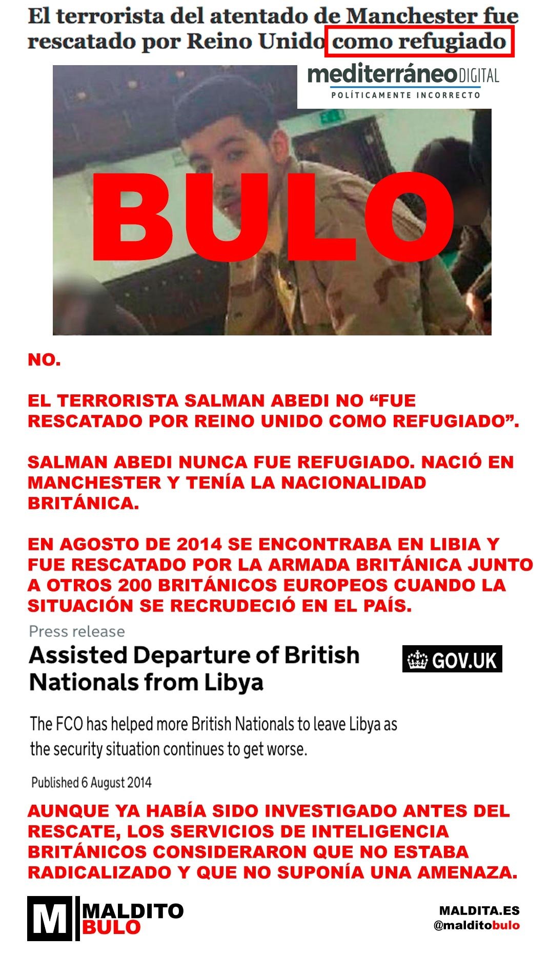 «[T] No, el terrorista de Manchester Salman Abedi no "fue rescatado por Reino Unido como refugiado"»