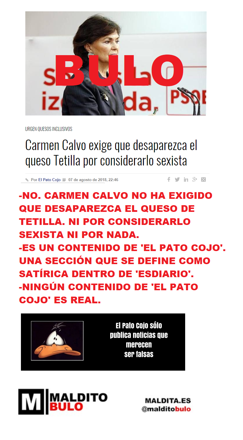 «[T] No, Carmen Calvo no ha exigido que desaparezca el queso Tetilla. Ni "por considerarlo sexista" ni por nada»