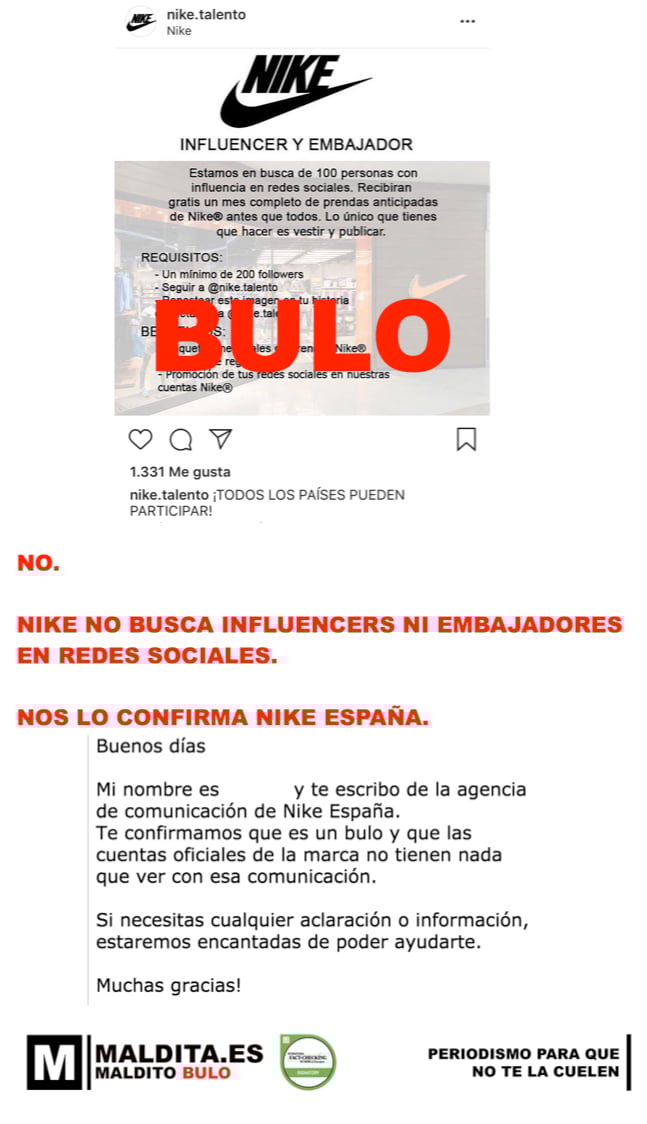 No, Nike no está buscando influencers en redes.