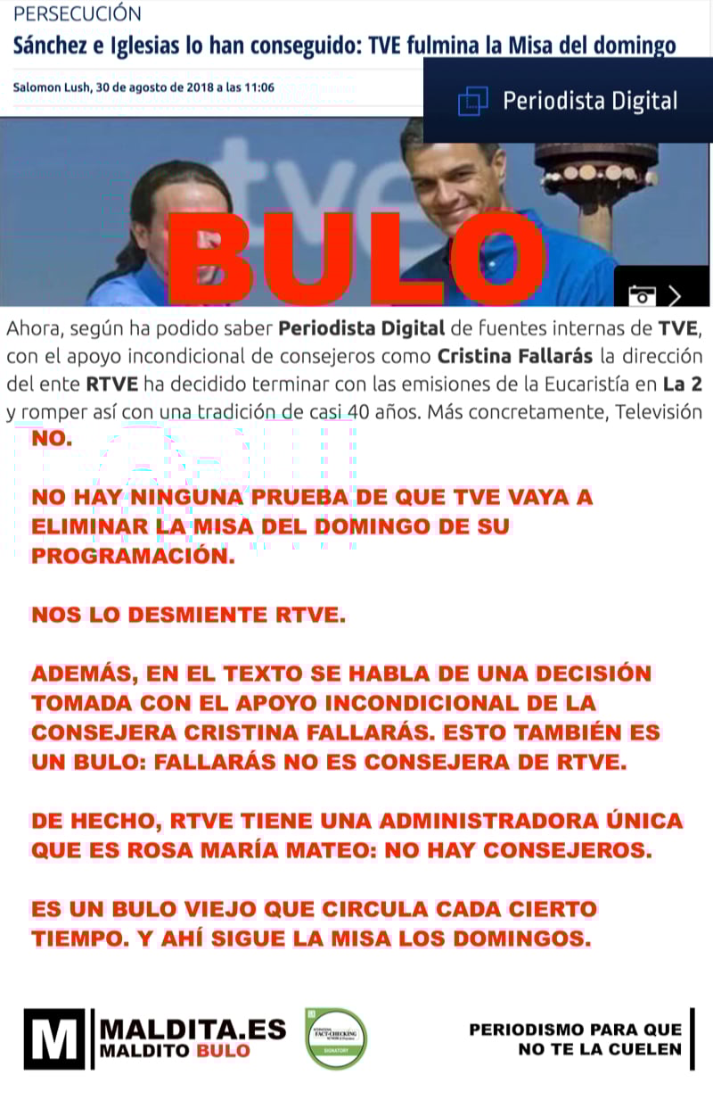 «[T] No, no hay ninguna prueba de que TVE vaya a eliminar la misa del domingo de su programación»