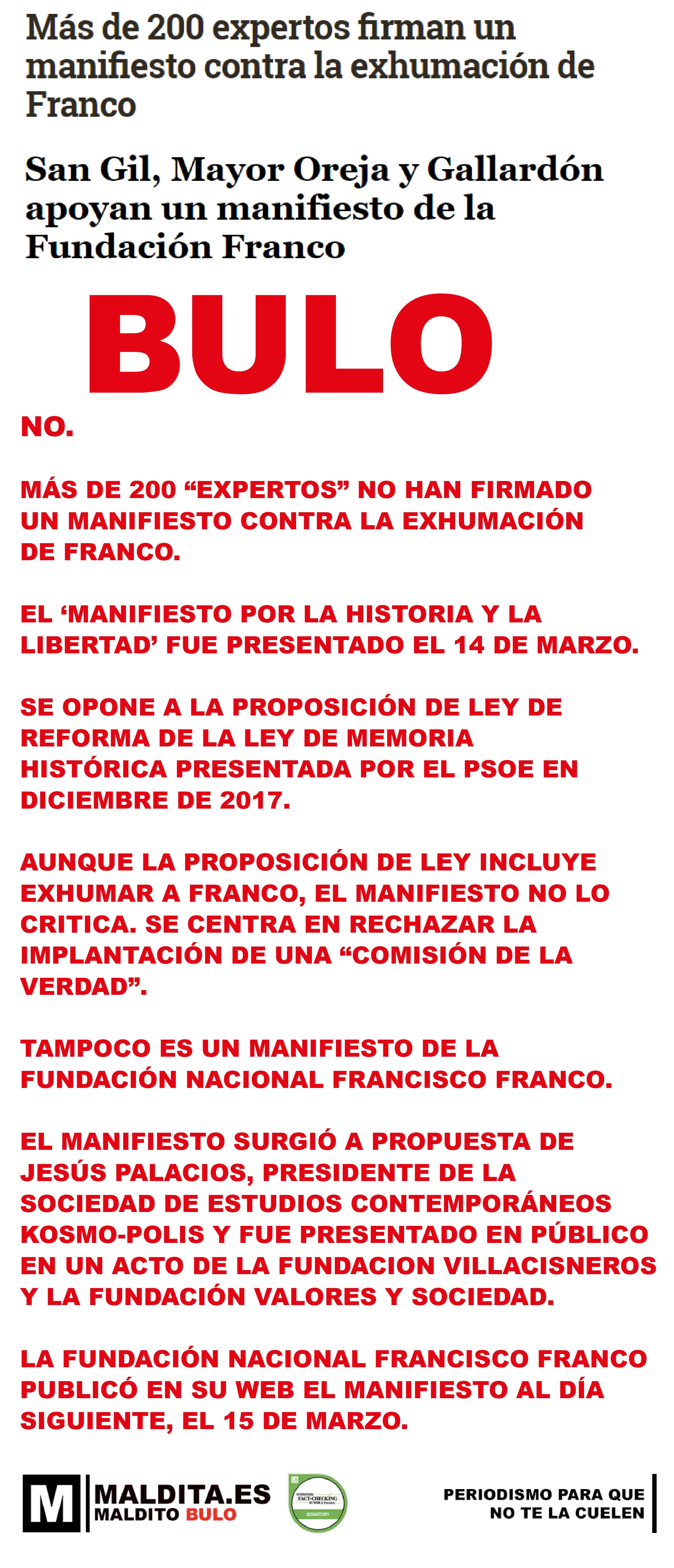 No. Más de 200 expertos no han firmado un manifiesto contra la exhumación de Franco.