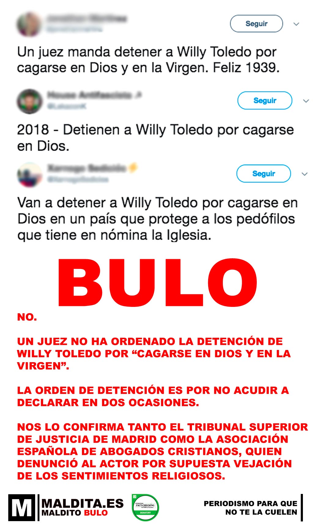 «[T] No, un juez no ha ordenado la detención de Willy Toledo por "cagarse en dios y en la virgen"»