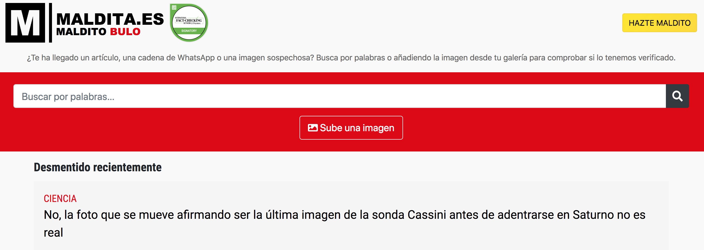 3. Y por último, nuestro buscador toma vida propia: en buscador.maldita.es a partir de ahora puedes buscar por palabras y también contrastar imágenes: puedes subir un meme, una captura o una foto que te ha llegado y que te huela rara y si ya la tenemos desmentida el buscador te dará la respuesta.