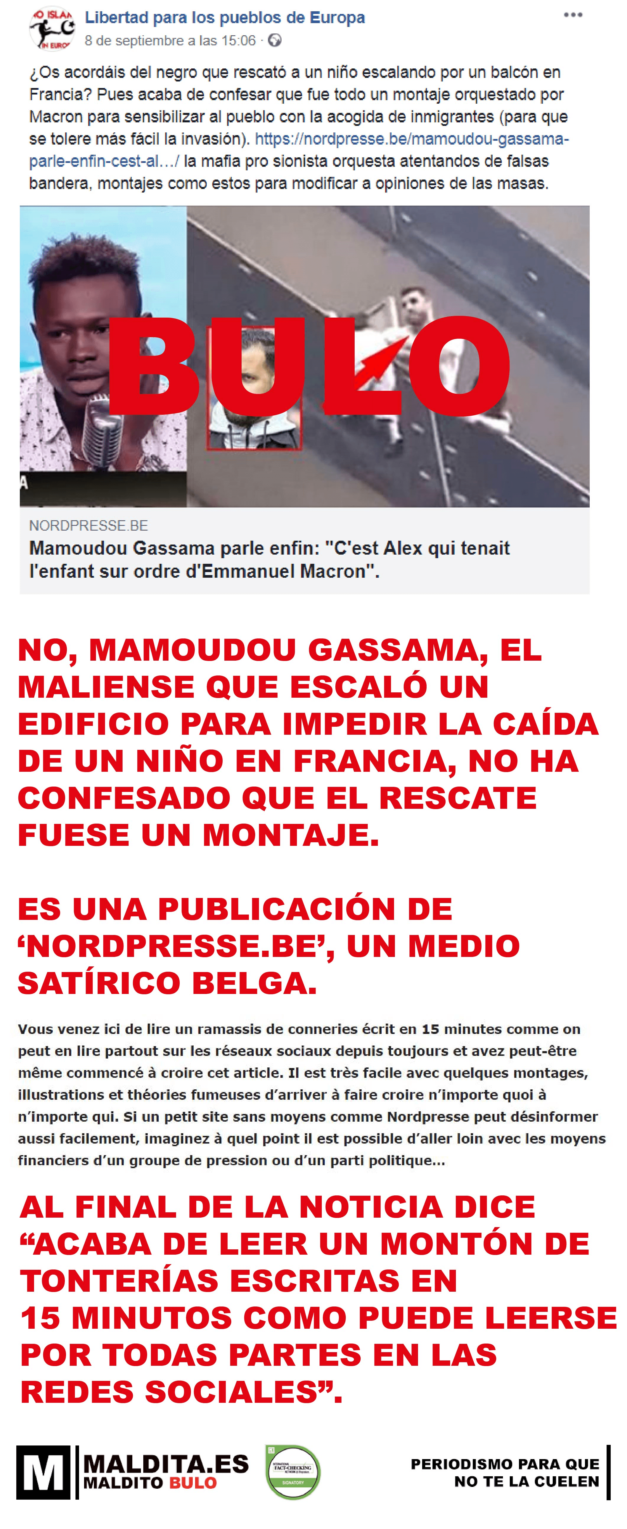 «[T] No, el maliense que salvó la vida de un niño en Francia no ha confesado que el rescate fuera un montaje»