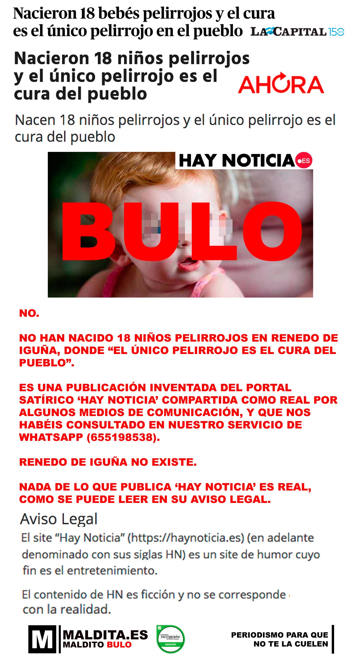 «[T] No, no han nacido 18 niños pelirrojos en Renedo de Iguña, donde "el único pelirrojo es el cura del pueblo"»