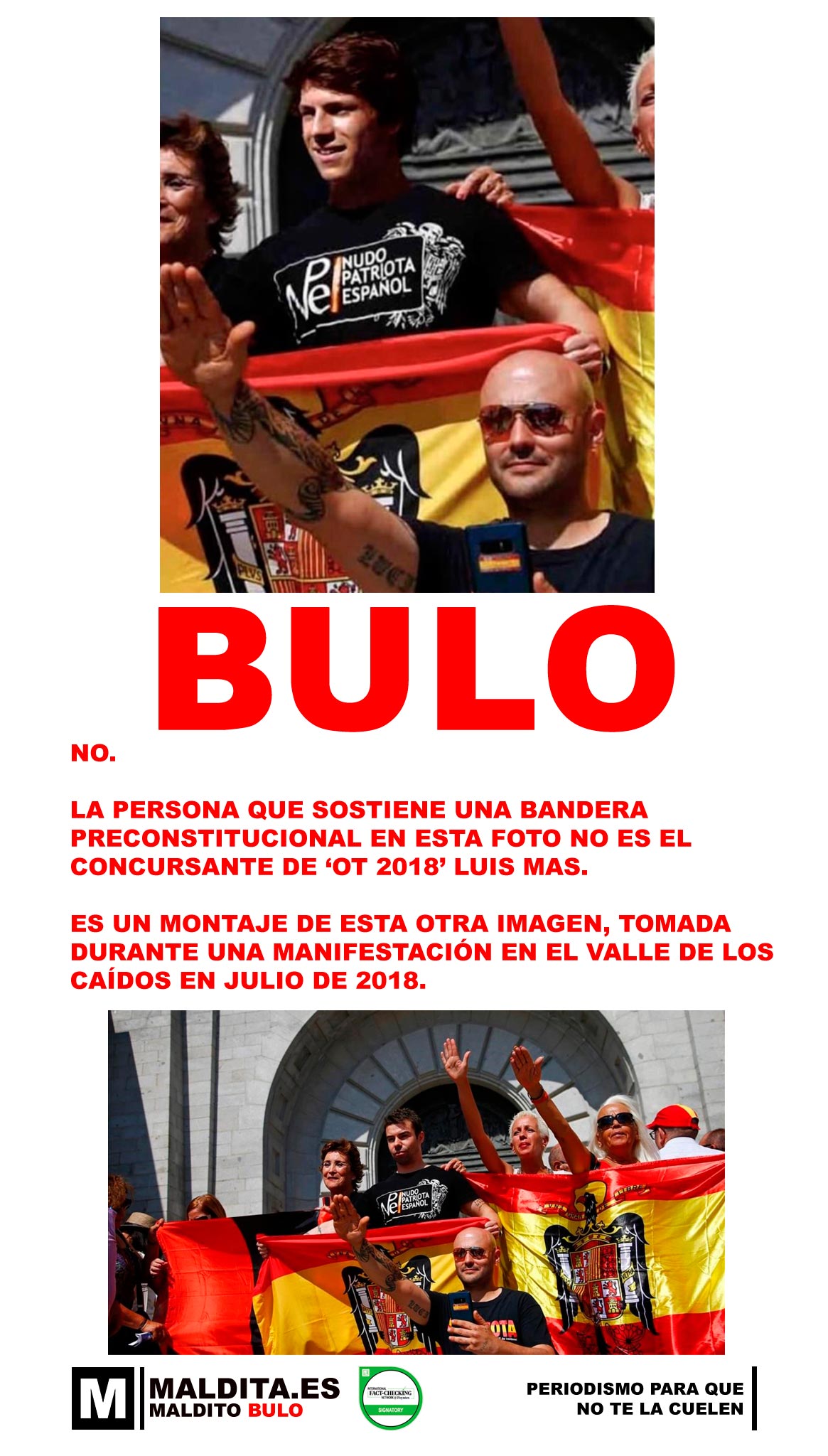 «[T] No, la persona que sostiene una bandera preconstitucional en esta foto no es el concursante de Operación Triunfo Luis Mas»