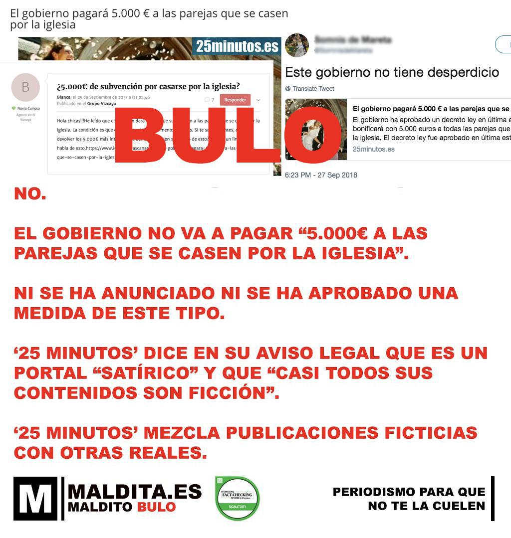 No, el Gobierno no va a pagar 5.000 euros a las parejas que se casen por la Iglesia