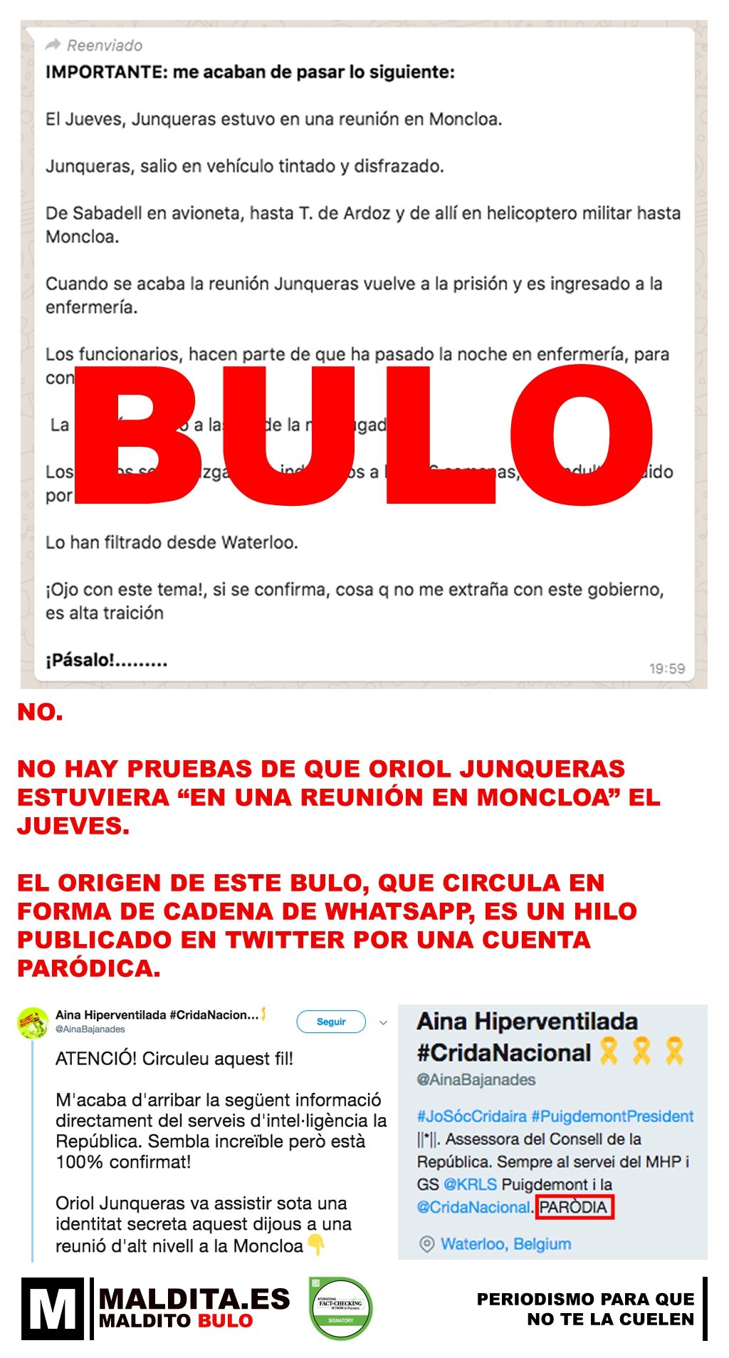 «[T] No, no hay pruebas de que Oriol Junqueras estuviera "en una reunión en Moncloa" el jueves»