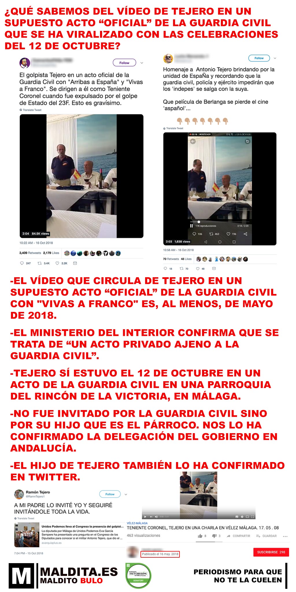 «[T] ¿Qué sabemos del vídeo de Tejero en un supuesto acto "oficial" de la Guardia Civil que se ha viralizado con las celebraciones del 12 de octubre?»