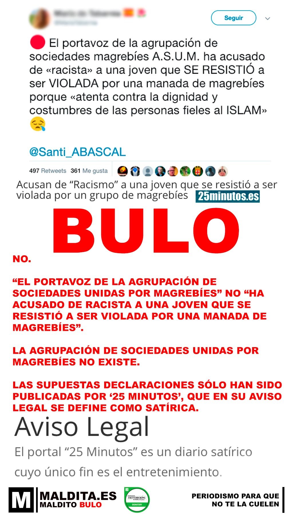 «[T] No, "el portavoz de la agrupación de sociedades unidas por magrebíes" no "ha acusado de racista a una joven que se resistió a ser violada por una manada de magrebíes"»