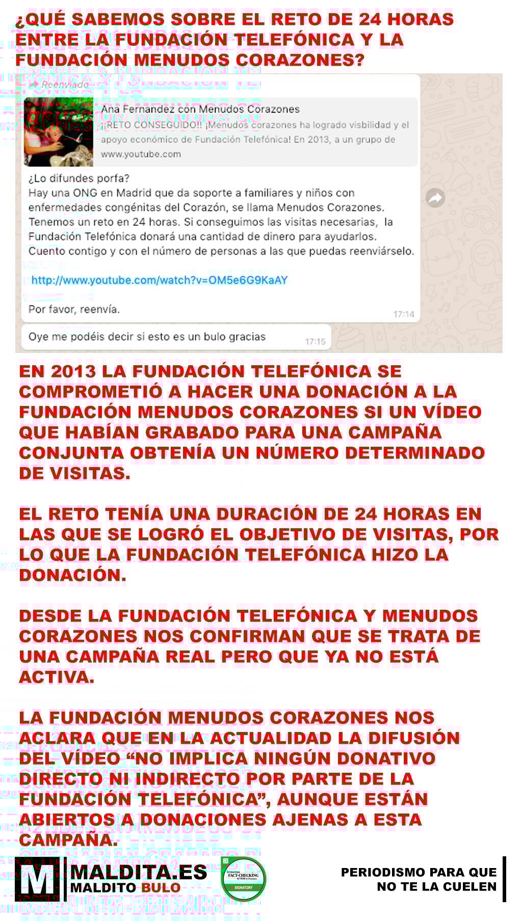 - Desde la Fundación Telefónica y Menudos Corazones nos confirman que se trata de una campaña real pero que ya no está activa.