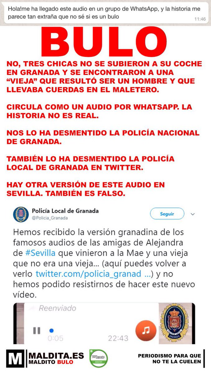 «[T] No, tres chicas no se subieron a un coche en Granada y se encontraron una "vieja" que resultó ser un hombre y que llevaba cuerdas en el maletero»