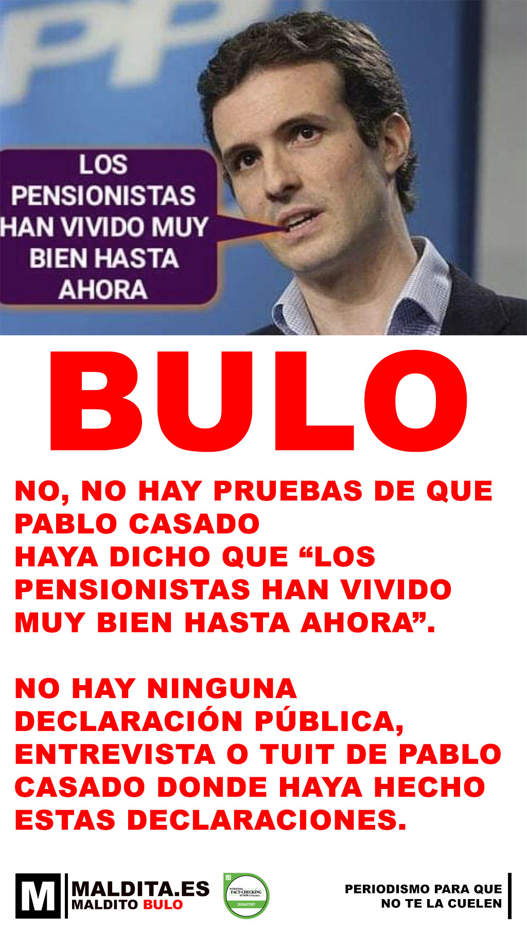 No, no hay pruebas de que Pablo Casado haya dicho que "los pensionistas han vivido muy bien hasta ahora"