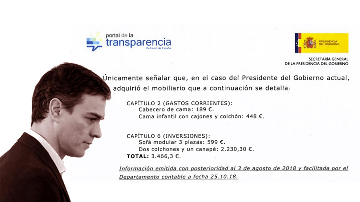 En octubre de 2018 ya os contamos que habíamos podido comprobar a través de una solicitud de acceso a la información que Sánchez se había gastado 1.388€ en renovar el mobiliario de La Moncloa.