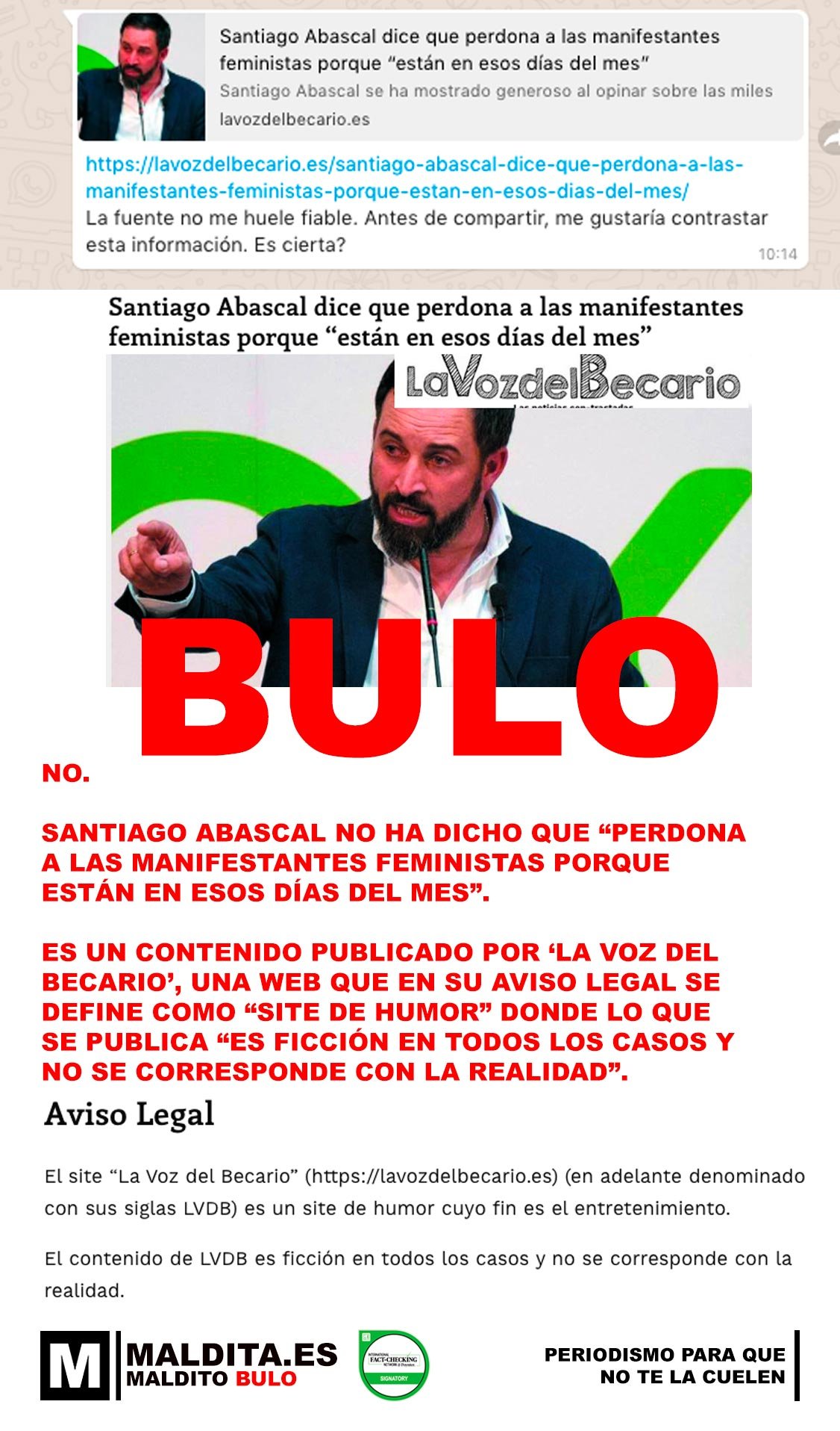 No, Santiago Abascal no ha dicho que "perdona a las manifestantes feministas porque están en esos días del mes"