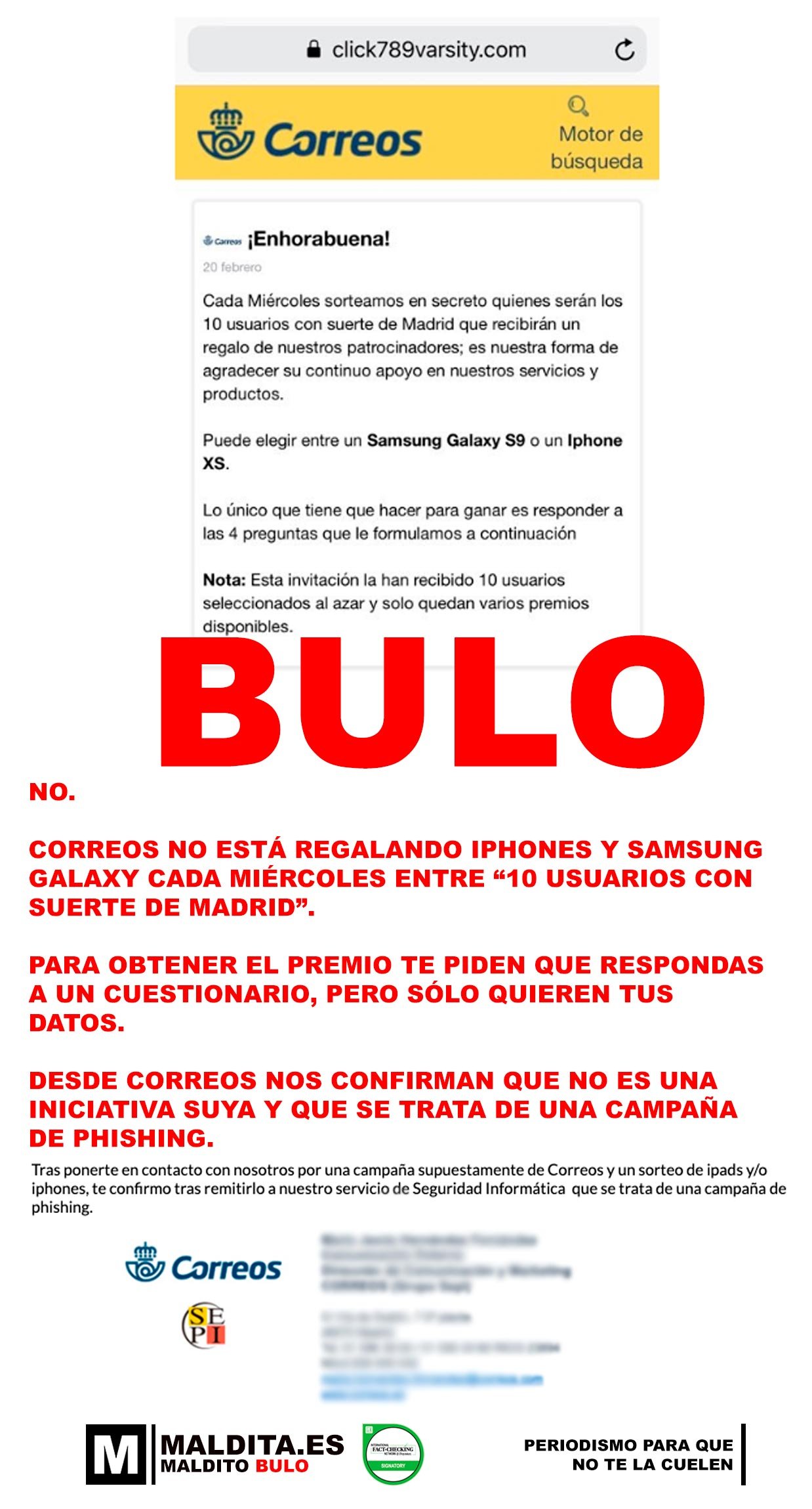 - Desde Correos nos confirman que no es una iniciativa suya y que se trata de una campaña de phishing.