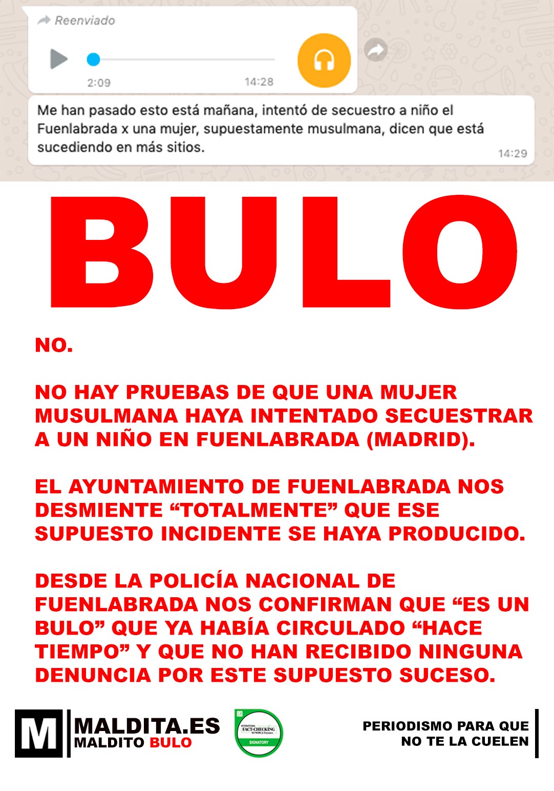 «Una mujer musulmana ha intentado secuestrar a un niño en Fuenlabrada (Madrid)»