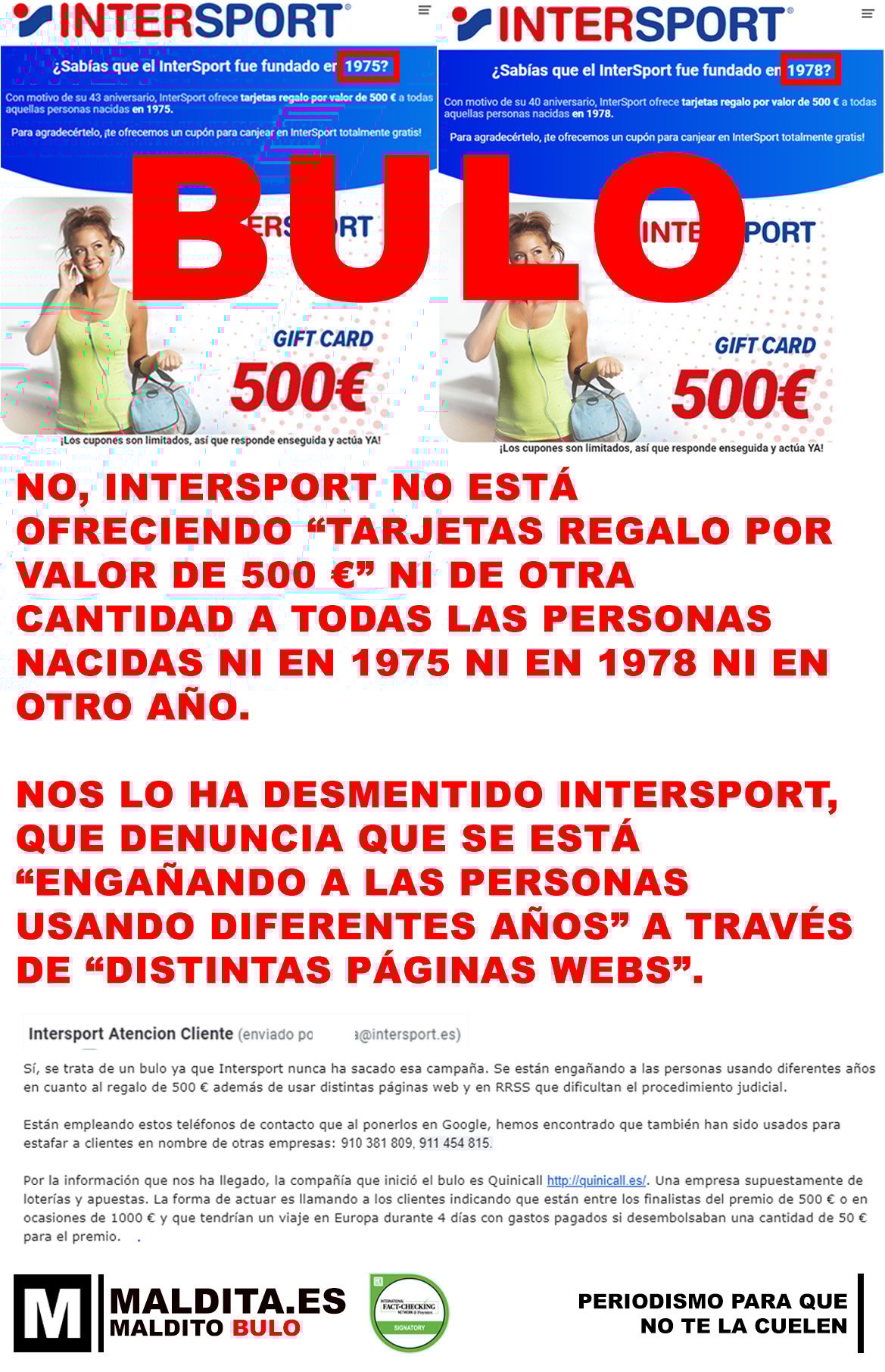 Nos lo ha desmentido Intersport, que denuncia que se está "engañando a las personas usando diferentes años" a través de "distintas páginas webs".