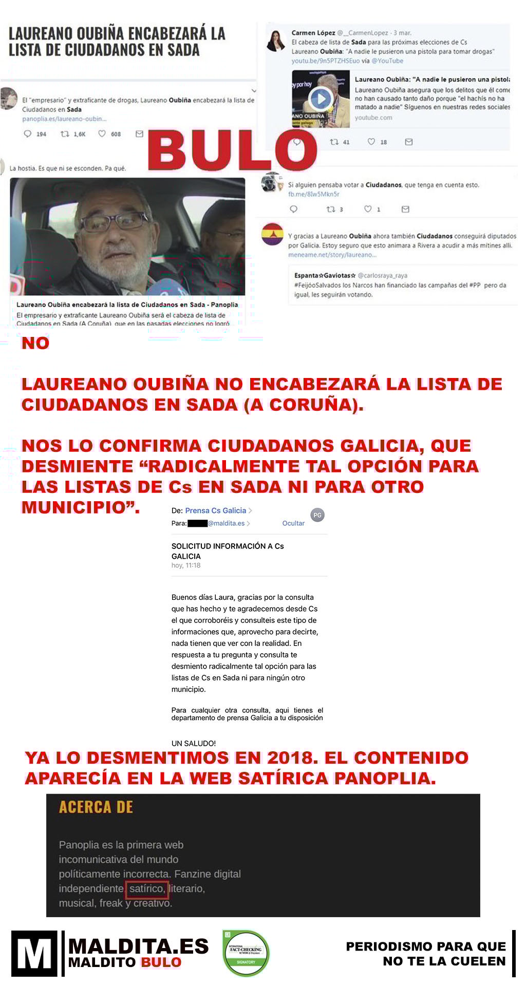 Nos lo confirma Ciudadanos Galicia, que desmiente "radicalmente tal opción para las listas de Cs en Sada ni para otro municipio".