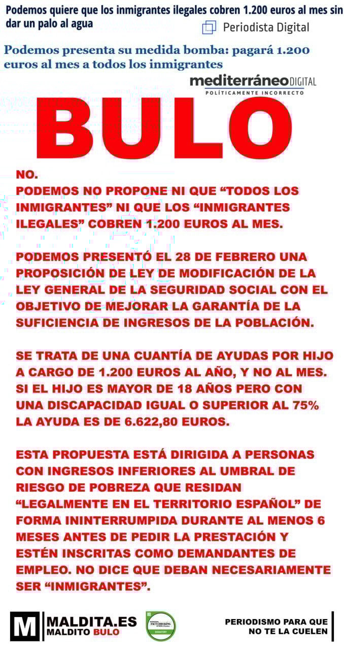 Esta propuesta está dirigida a personas con ingresos inferiores al umbral de riesgo de pobreza que residan “legalmente en el territorio español” de forma ininterrumpida durante al menos 6 meses antes de pedir la prestación y estén inscritas como demandantes de empleo. No dice que deban necesariamente ser “inmigrantes”.