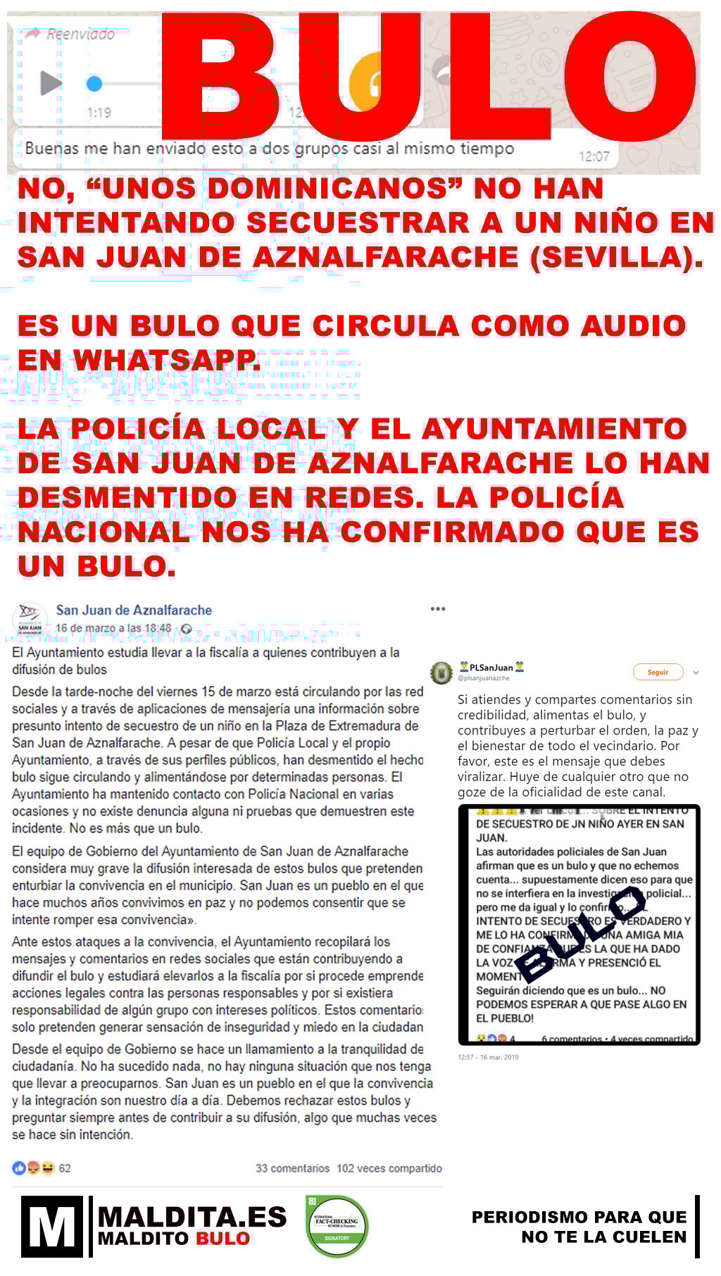 La Policía Local y el Ayuntamiento de San Juan de Azanalfarache lo han desmentido en redes. La Policía Nacional nos ha confirmado que es un bulo.