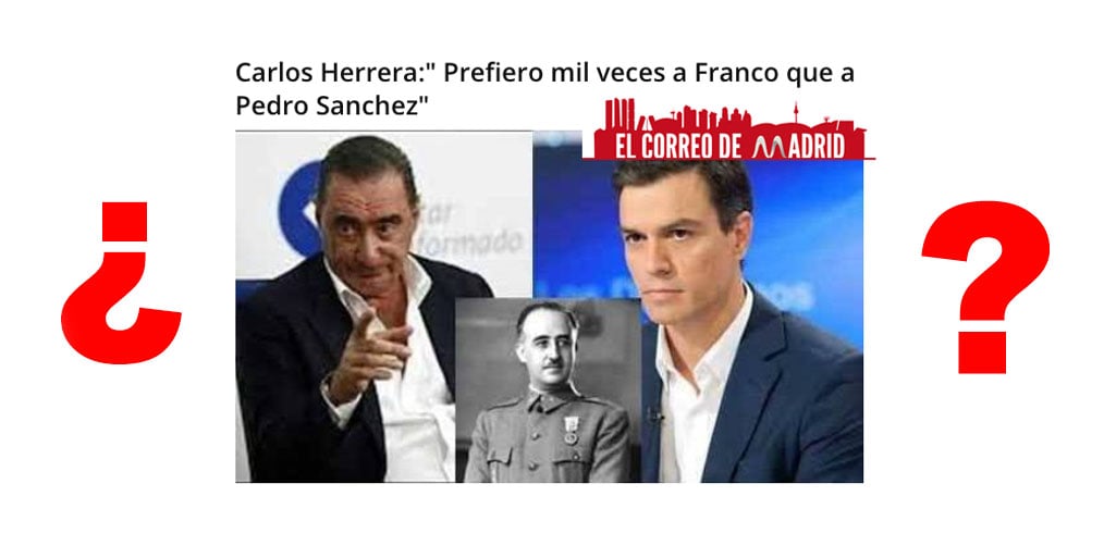 La web El Correo de Madrid publicó el pasado 25 de febrero un contenido que en su titular atribuía al periodista de la Cadena Cope Carlos Herrera la siguiente frase: "prefiero mil veces a Franco que a Pedro Sánchez".