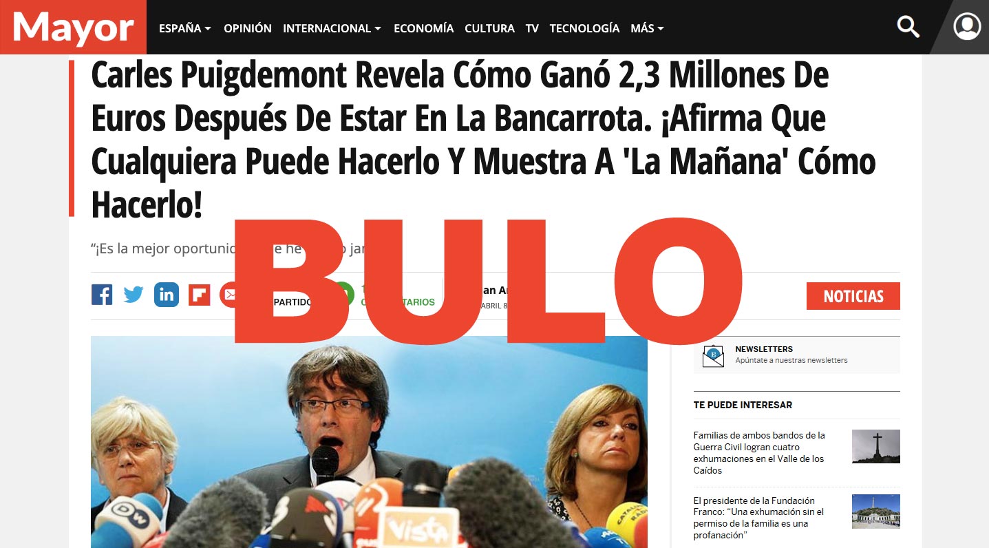 El timo, por el que una lectora de Maldita.es perdió más de 10.000€, ha vuelto a circular usando como cebo al expresident de la Generalitat de Cataluña Carles Puigdemont, quien se habría embolsado 2,3 millones de euros tras "estar en la bancarrota" a través de un supuesto producto financiero llamado Bitcoin Future. No es cierto.