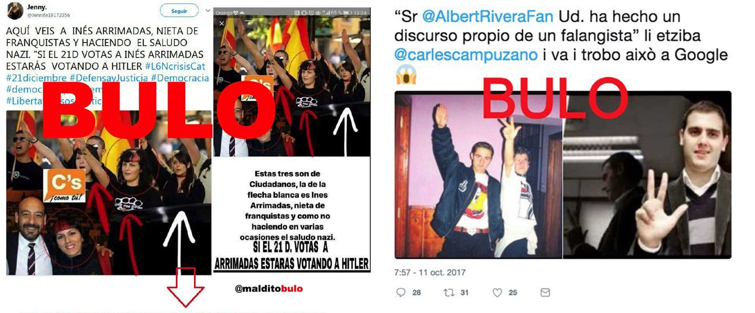 Hay varias imágenes de personas haciendo saludos o con banderas fascistas y declaraciones que vuelven a circular cada cierto tiempo atribuidas a políticos de Ciudadanos. Son falsas. Aquí las recopilamos, junto a algunas frases que nunca ha dicho el presidente del partido, Albert Rivera y algunos de los bulos que se han movido sobre él.