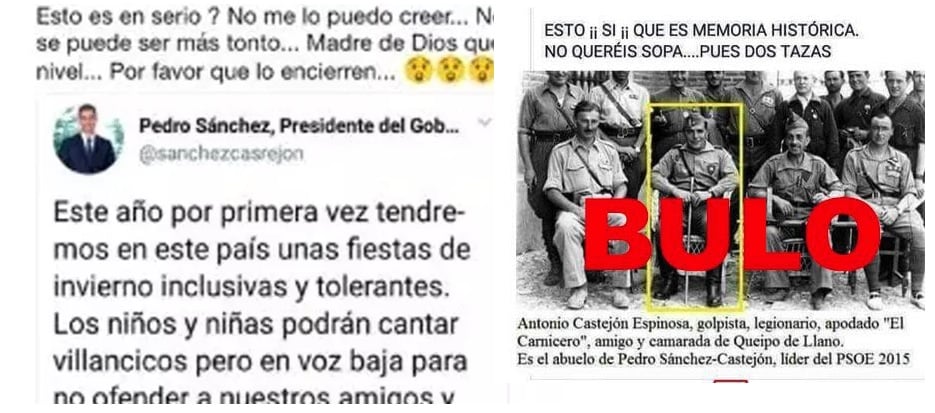 La desinformación también se manifiesta como tuits y frases falsas atribuidas a políticos o bulos que surgen sobre el presidente Pedro Sánchez u otros miembros del PSOE.