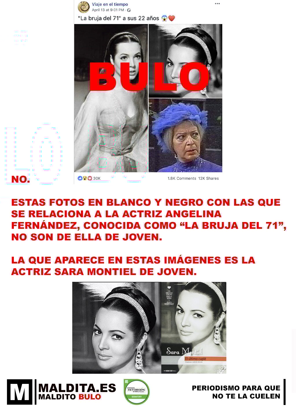 - Estas fotos en blanco y negro con las que se relaciona a la actriz Angelina Fernández, conocida como “la bruja del 71”, no son de ella de joven.