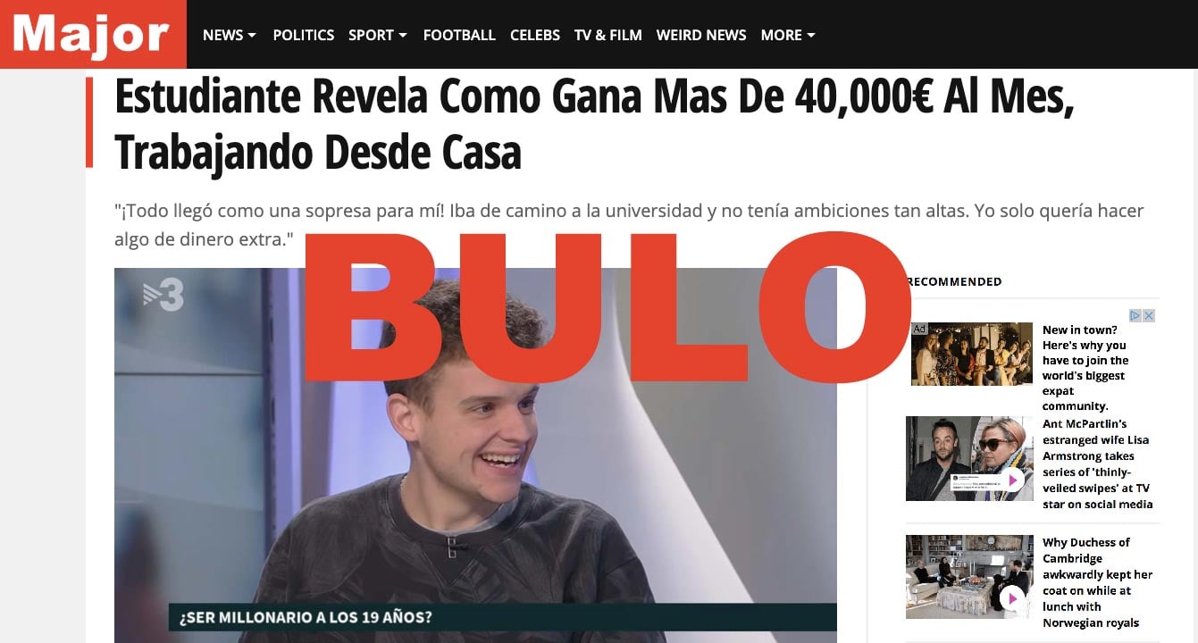 El último es el de usar a un supuesto estudiante para hacer ver que cualquiera puede beneficiarse de esos supuestos productos financieros. En el caso más reciente, aseguran que un "estudiante revela cómo gana más de 40.000€ al mes trabajando desde casa".