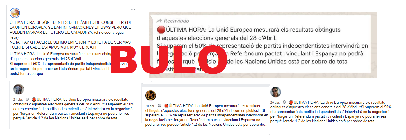 No hay ningún comunicado de ningún organismo de la Unión Europea que afirme que si los partidos independentistas catalanes superan el 50% de representación el 28A forzarán un referéndum pactado y vinculante con España, como afirma esta cadena.