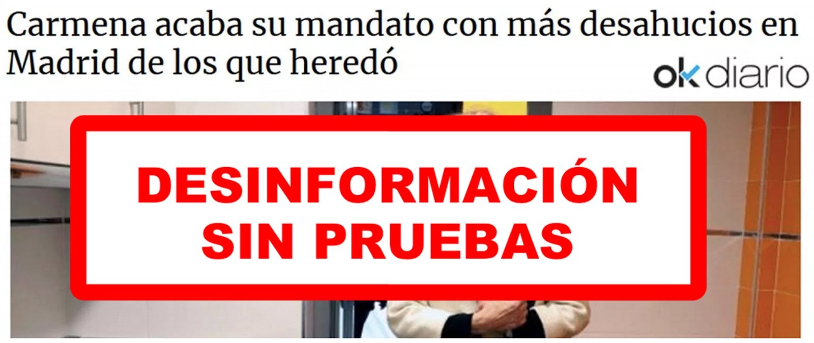 Nos habéis preguntado a través de nuestro número de WhatsApp 655 198 538 por un contenido que OkDiario publicó el 8 de mayo con este titular: 'Carmena acaba su mandato con más desahucios en Madrid de los que heredó'. No hay pruebas de que sea así. Lo explicamos.