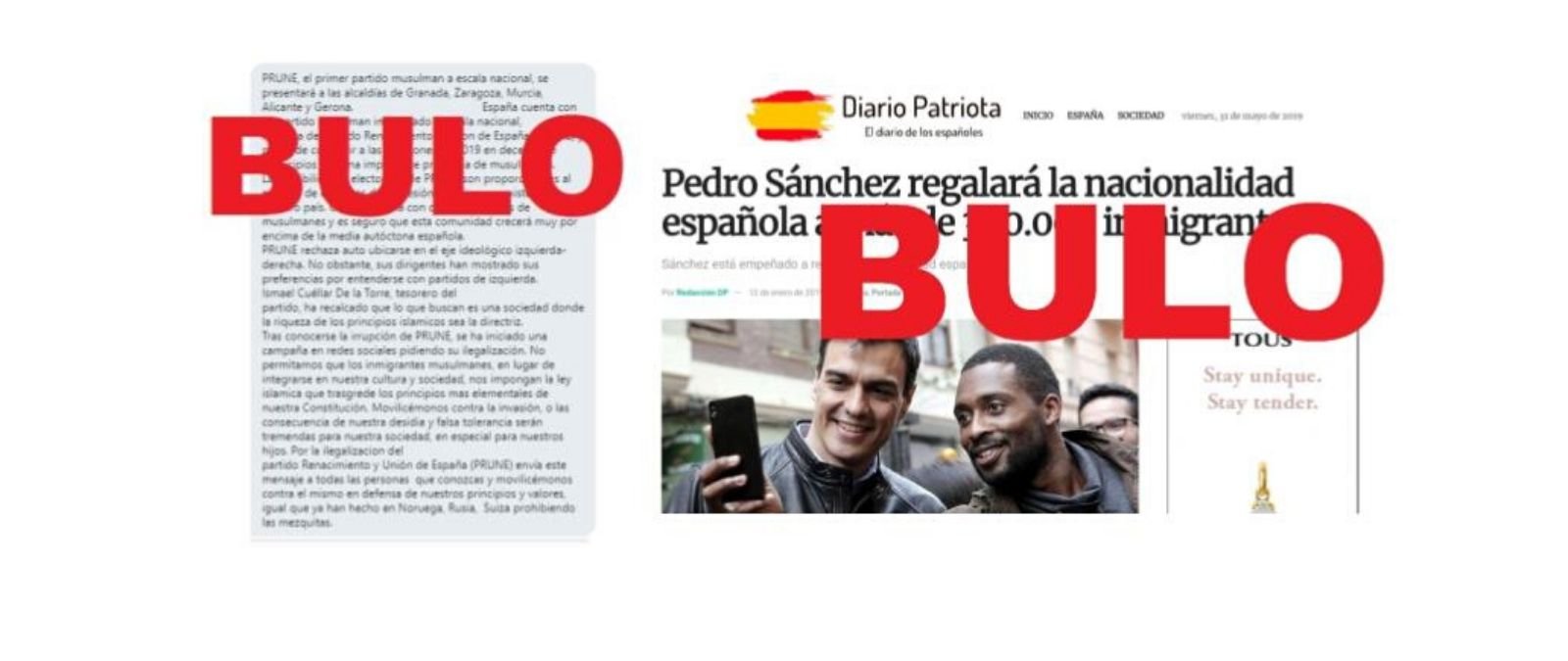 Hay bulos sobre migrantes y musulmanes que se llevan moviendo desde enero. Uno de ellos alertaba falsamente sobre el auge de un partido de corte musulmán, PRUNE, que nunca antes se había presentado a las elecciones y del que no tenían referencias sobre él ni las encuestas electorales ni el Centro de Investigaciones Sociológicas.
