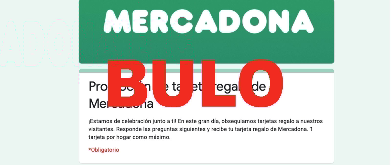 Todo empieza con un formulario de Google Docs en el que te preguntan por la frecuencia con la que compras en Mercadona. A cambio de responder te ofrecen una tarjeta regalo para gastar en dichos establecimientos, pero es un timo y Mercadona nos dice que no tienen nada que ver con la falsa promoción.