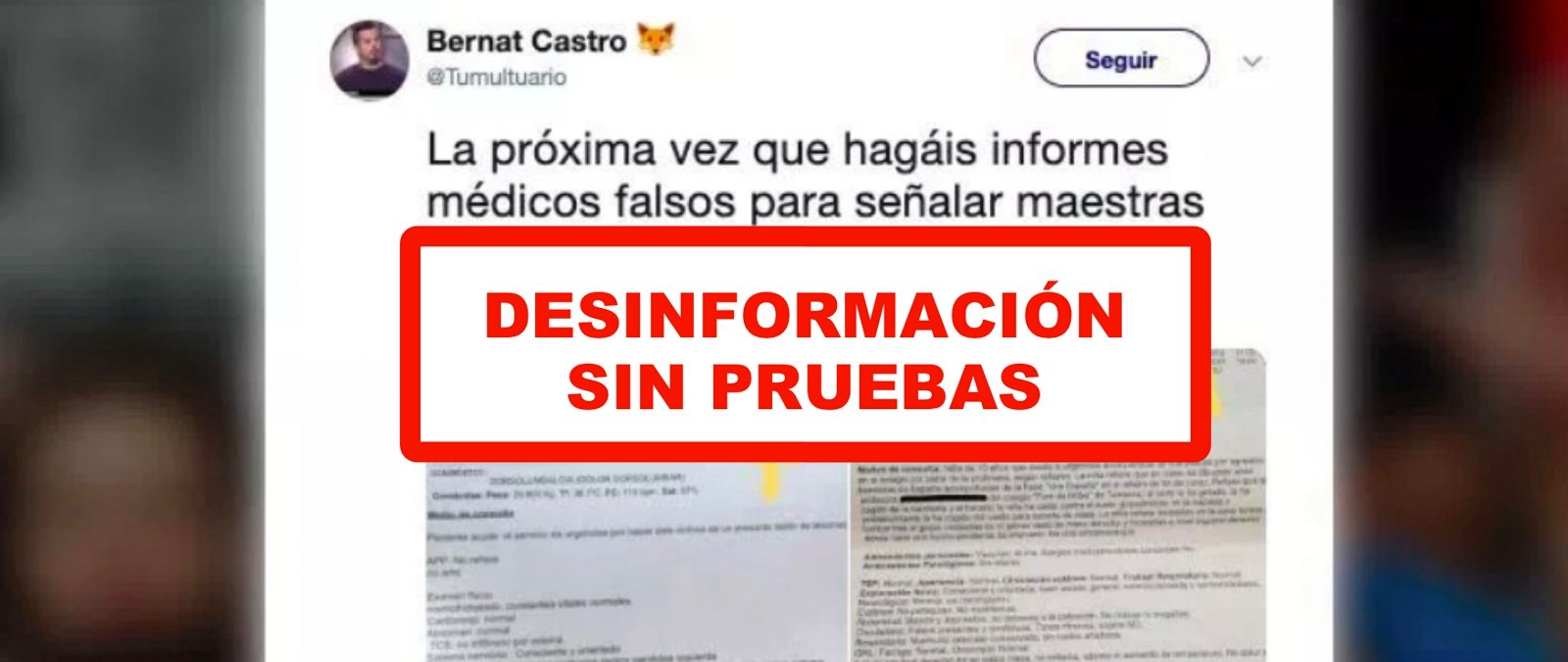 En el comunicado, donde confirman que se ha abierto un expediente disciplinario a la docente, afirman que han tenido acceso al informe médico elaborado por el hospital, pero nos aseguran que no pueden confirmar si se trata de el que se difundió originalmente o no. El que sí sabemos que es falso, como decimos, es el que se ha viralizado en las últimas horas.