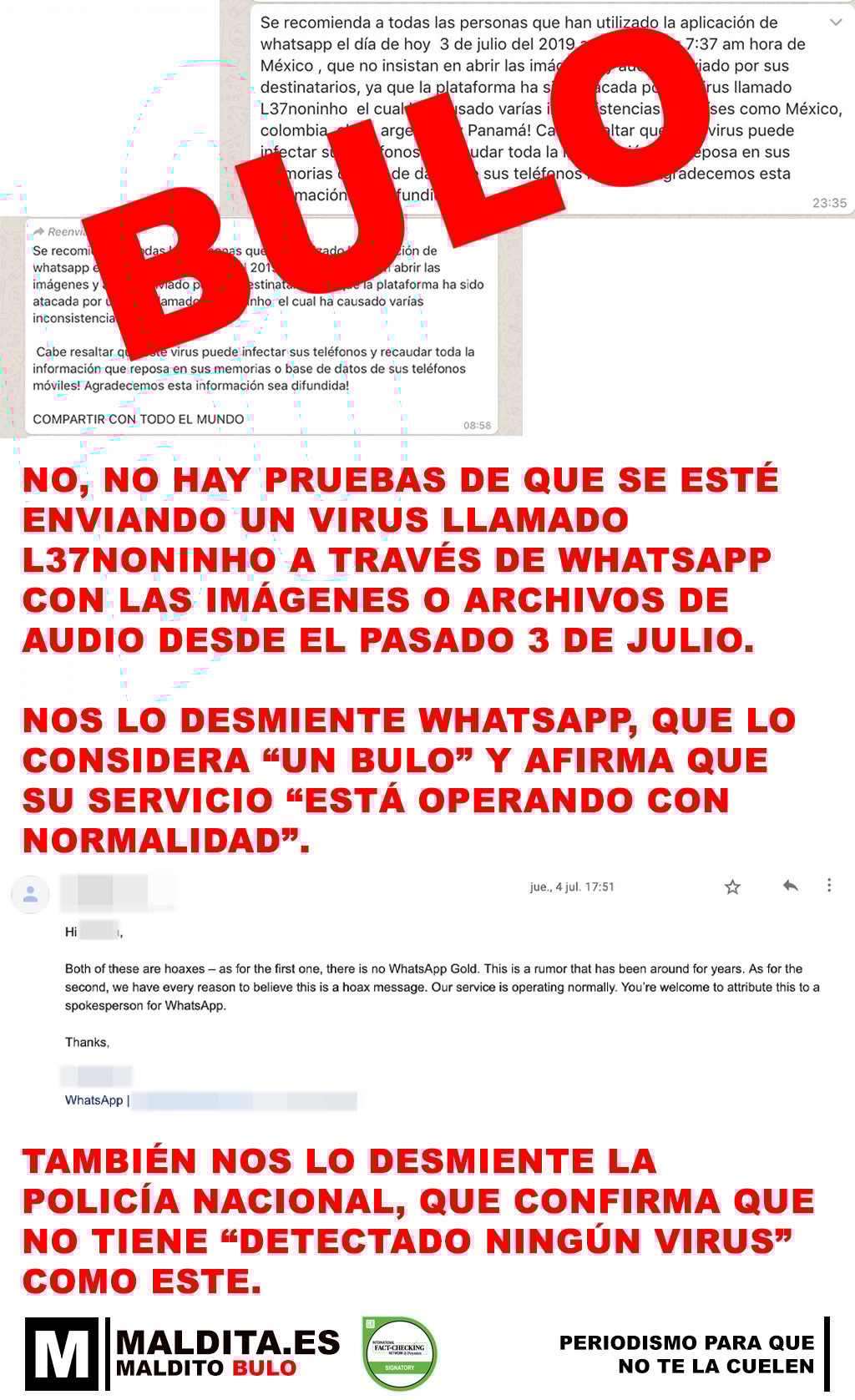 También nos lo desmiente la Policía Nacional, que confirma que no tiene “detectado ningún virus” como este.