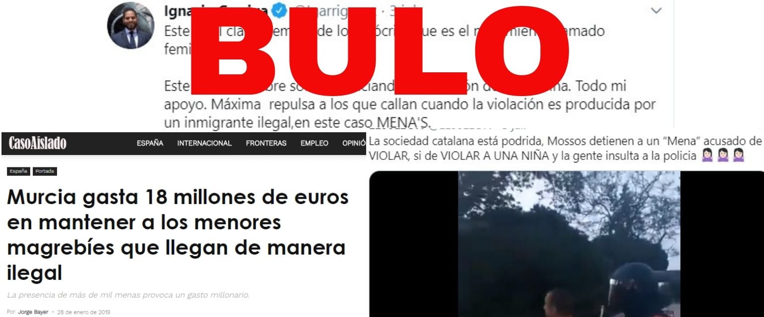 Usuarios en redes sociales dicen que los supuestos agresores sexuales de la manada de Manresa son Menores Extranjeros No Acompañados (MENA). Otros, que Murcia gasta millones y millones de euros en su manutención o que se ofrece una "paga de 664 euros a los extranjeros menores de 23 años sin trabajo". También circulan vídeos y palizas que identifican falsamente a menores extranjeros.