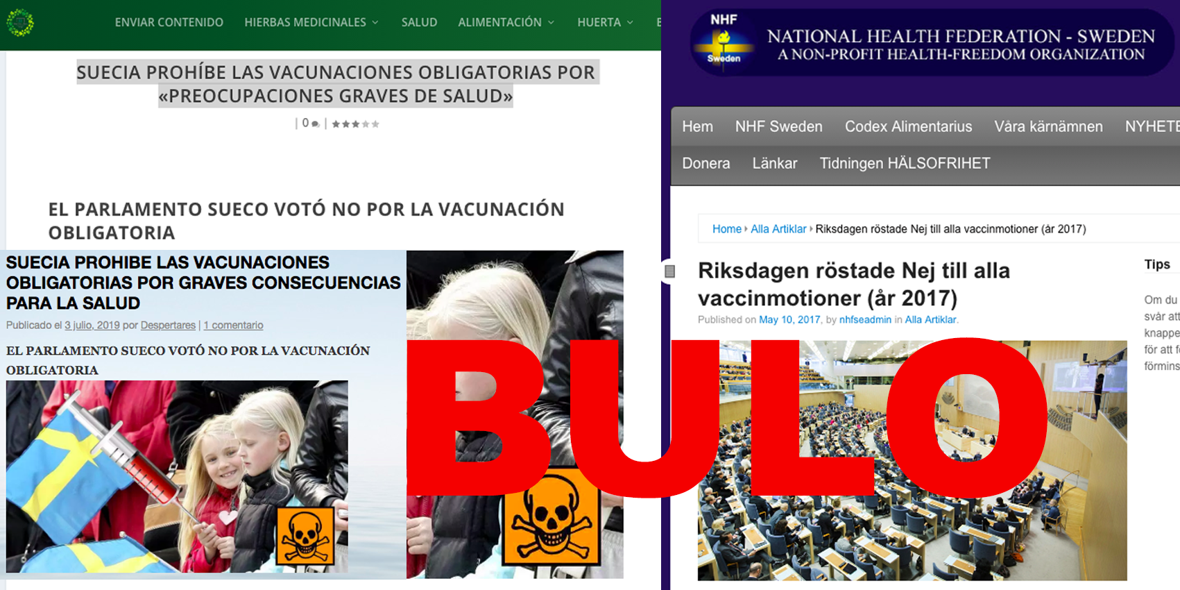 Las publicaciones acerca de la prohibición de Suecia de las vacunas "por sus graves consecuencias para la salud" llevan circulando en diferentes idiomas desde mayo de 2017. En 2018, Snopes lo desmintió y señaló una publicación del grupo National Health Federation como fuente de la desinformación: