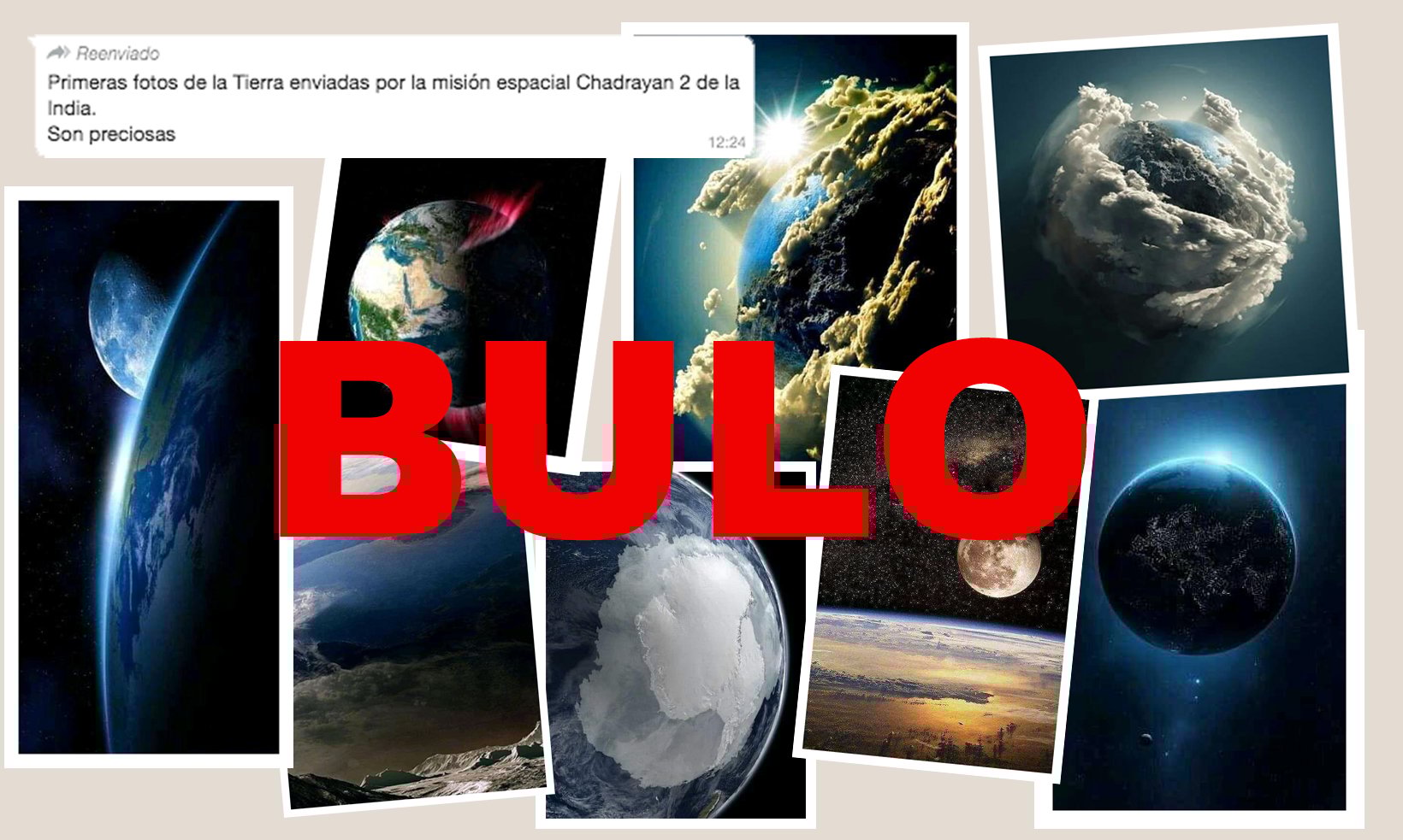 Está circulando por WhatsApp una cadena de imágenes de la Tierra de las que se dice que son "las primeras fotos de la Tierra enviadas por la misión espacial Chadrayaan-2 de la India", enviada a la Luna el pasado 22 de julio. Pero es un bulo.