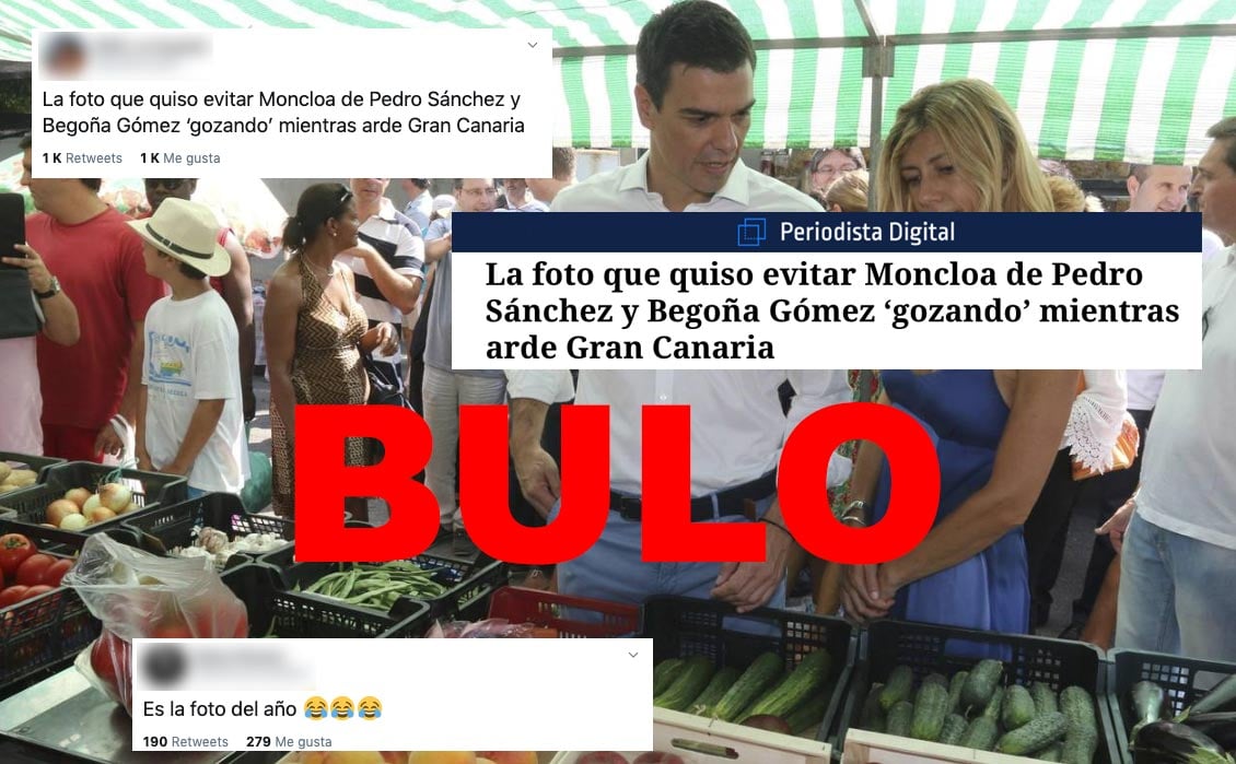 Se está viralizando una imagen de Pedro Sánchez y su mujer, Begoña Gómez, en un mercado como si hubiera sido tomada "mientras arde Gran Canaria", en relación al incendio producido allí en agosto de 2019, pero no es cierto. La imagen es de agosto de 2014, cuando el actual presidente del Gobierno en funciones y Gómez estaban de vacaciones en Mojácar (Almería).