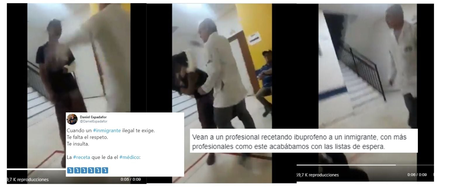 Nos estáis preguntando por esta bofetada que da un sanitario a un supuesto paciente "ilegal". El mensaje se mueve con los mensajes de "Cuando un #inmigrante ilegal te exige. Te falta el respeto. Te insulta" y también con la frase de "Vean a un profesional recetando ibuprofeno a un inmigrante, con más profesionales como este acabábamos con las listas de espera".