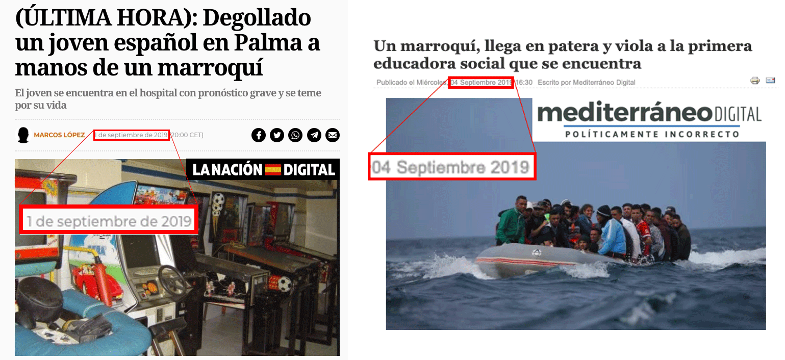 Esas acciones también son perjudiciales cuando tienen una clara intención de moldear el estado de opinión sobre distintos temas, como puede ser la inmigración o la criminalidad. Un ejemplo de ello es un contenido publicado el 1 de septiembre de 2019 por la web Nación Digital en el que se contaba cómo un hombre había degollado a otro en un salón de juegos de Palma (Mallorca).