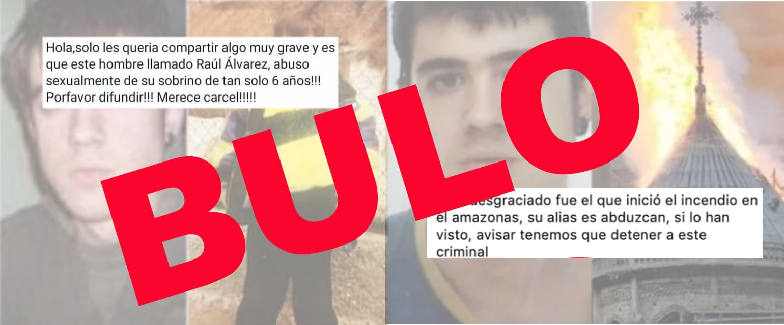 Por otro lado, se ha difundido un bulo que dice que "este hombre llamado Raúl Álvarez abusó sexualmente de su sobrino de tan solo 6 años" y que va acompañado de dos fotografías del supuesto agresor y de la víctima. Sin embargo, tanto el supuesto abusador como la supuesta víctima se tratan de la misma persona: de nuevo el youtuber Auronplay. Aquí os contamos este bulo.